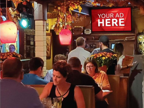 Our screens can be found in many popular locations throughout the community. Our screens offer a unique format…keeping you in front of your customers at your establishment, even when other ads are playing.